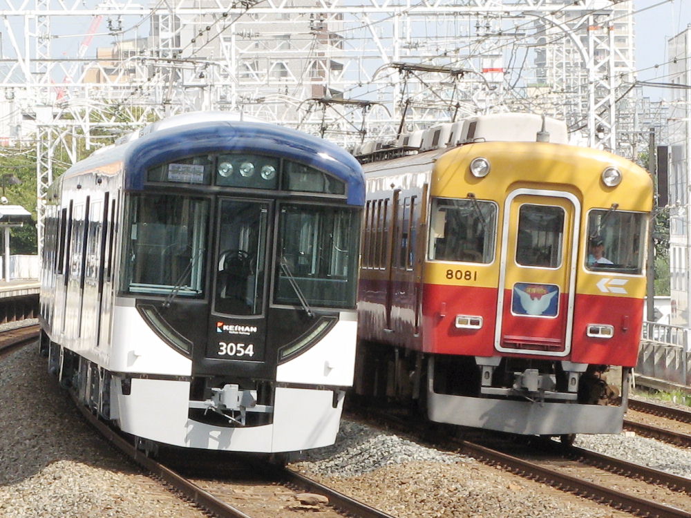 撮りに行ってきました。 まだ臨時での運用は あるようなので、廃車ではないようです。 今日は、通勤色、特急色ともに、「おりひめ」、「ひこぼし」に運用されました。 「おりひめ」はK特急なので、通勤色にも特急マークが付いてました。 次の駅近すぎです^^ やはり特急マークは特急色が似合います。 京阪電車は通常、日中はライトをつけませんが、サービスでしょうか?w ホームの端には、撮影軍団が群がってて近寄れませんでした。 こんな状態はかなり危険です!! かたまってると撮りにくいと思いますが... この駅だけでなく今日は他の駅も撮影者でいっぱいでした。 通勤色が各停で折り返してきました。 特急マークは裏返してます。 行き先表示幕が隠れてしまうためか、着脱式の 行き先表示板が付けられてました。 この方が昔っぽくて良い感じです^^ |