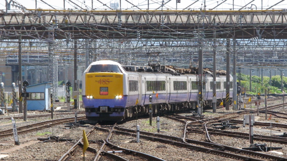 弘前で写真を撮ってたら、臨時の583系が入って来てました。