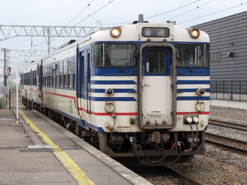 行きは奥羽本線を選択しましたが、結果的に正解でした。帰りの東北本線は、 地震の影響で徐行&間引き運転を行っていてエライ目にあいました・・・ 山形新幹線のために線路幅が標準軌に換えられたため、標準軌用につくられた 719系の5000番台です。 側面帯が赤/緑色になってる0番台車と違って、赤いとこがオレンジっぽい 色になってます。 べにばな色といわれてるようですが... 米沢駅に、米坂線の気動車が たくさんいました。 新潟色のキハ52や国鉄色のキハ58、キハ52などなど・・・ 向こうに渡って撮りたかったんですが、そうすると乗り遅れそうだったので、 諦めました... 残念!! PR |