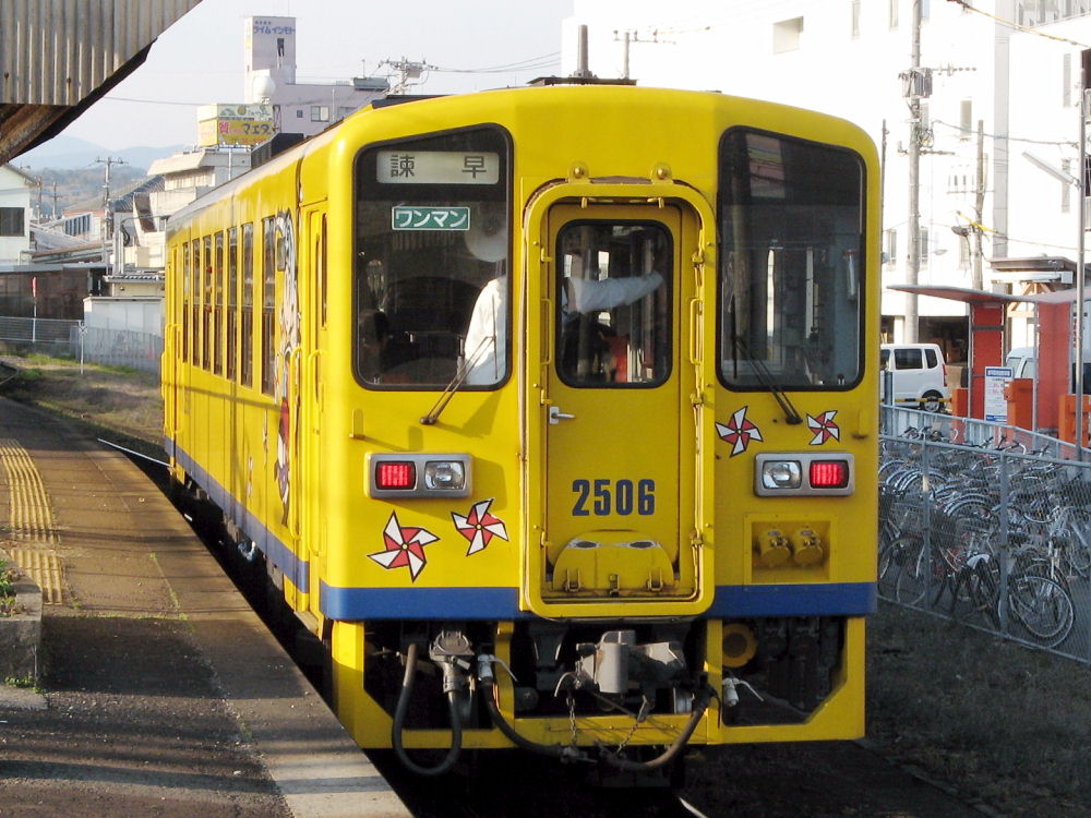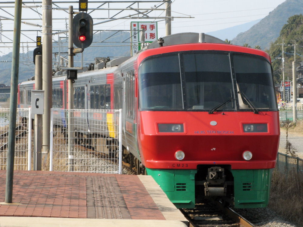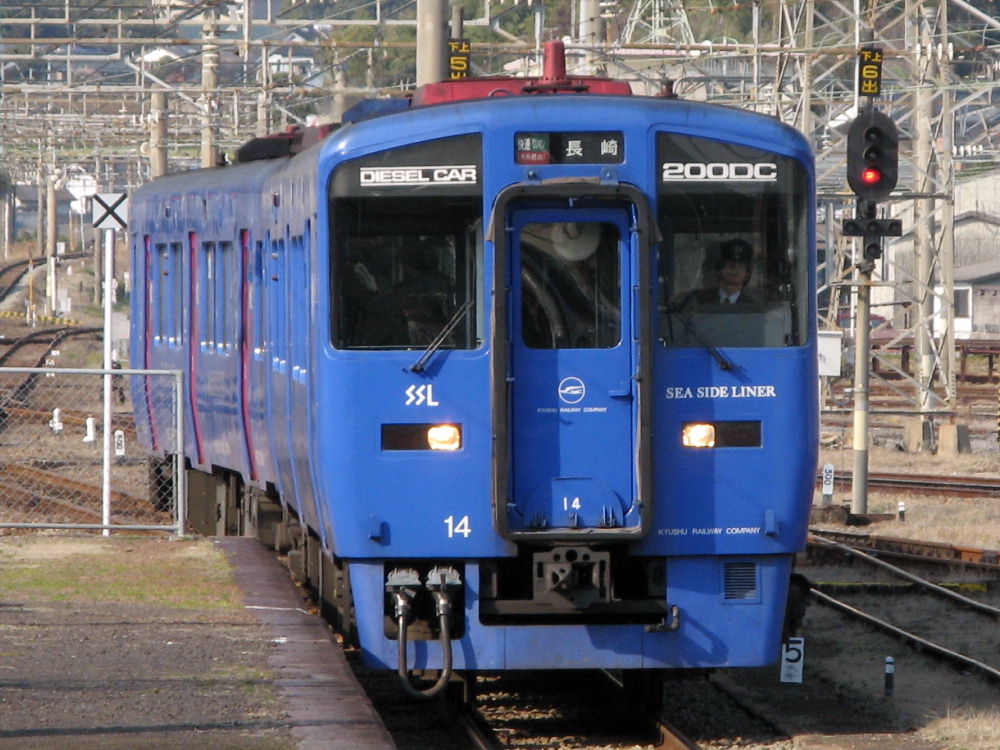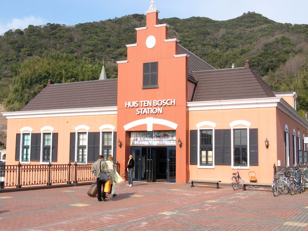 次の早岐駅で「みどり」と連結するので、この黄色の貫通型先頭車は早岐駅~ ハウステンボス駅の1駅間でしか使われません。 反対側は赤の非貫通型で、肥前山口で「かもめ」と非貫通型同士で連結する ケースが多いようです。 ハウステンボス駅の駅舎です。 洋風です^^ 外国人旅行者らしき人がいました。 わざわざ日本に来て、外国風のテーマパーク に行かなくてもw 駅とハウステンボスの間の川みたいのは、早岐瀬戸という狭い海峡です。 ハウステンボスは針尾島という島にありますが、九州本土に密接してるので、 川か運河みたいに見えます。 早岐駅到着です。 「みどり」と連結作業中! |