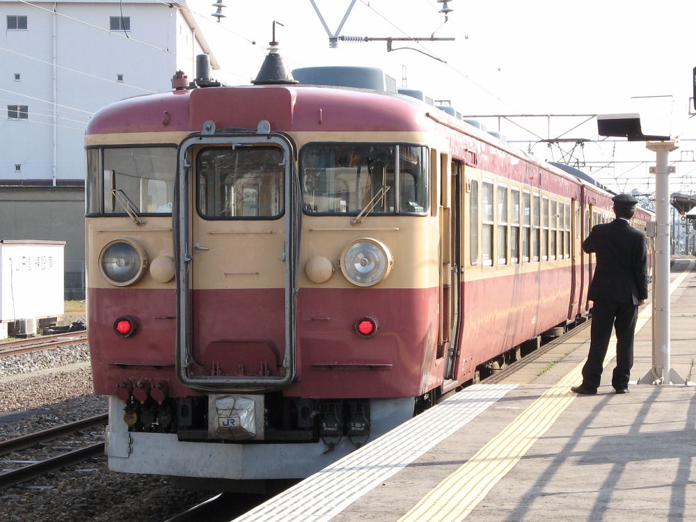 この地区の415系は、113系に交流機器を装備した改造車両です。