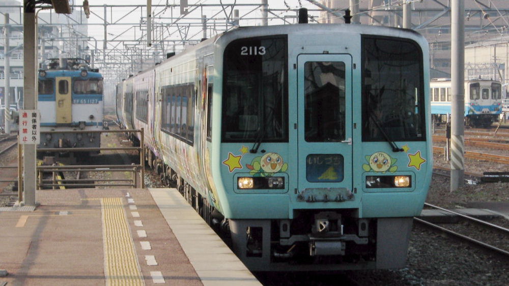 2004「ばいきんまん号」 2110「クリームパンダ号」 列車名が「しまんと」になりかけてますが、くるくる回してた時に撮ったようです。 ここは岡山なので「しまんと」は来ませんw 「しおかぜ」です。 2113「メロンパンナちゃん号」 EF65も写ってますが、四国で見た電気機関車は、この扉がカラシ色の1000番台 ばかりでした。 2000系の先頭車には他に、2109「しょくぱんまん号」、2152「ロールパンナ号」 などもあるようです。 中間車には、2204「おむすびまんトリオ号」、2208「どんぶりまんトリオ号」、 2210「あかちゃんまん号」、2217「パンこうじょうのなかま号」などの名前が ついてるようです^^ |