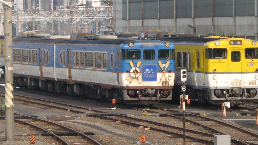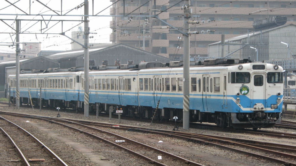兵庫北部の山陰線や播但線では、 ピンクに緑のアクセントが入った、播但線南部の103系電車の塗装とお揃いです。 播但線にはキハ47の片側を運転台に改造して両運転台化したキハ41もあります。 雨で暗いです... 鳥取あたりの山陰線では・・・ これはいわゆる「首都圏色」とよばれるキハ40系のオリジナルカラーです。 赤系単色で㊤の兵庫北部カラーとイメージが似てますが、その境は何処かわかりません。 県境付近では重複してるのかな? 単色でそっけないためか、この色をベースに鬼太郎列車やドジョウすくいのアニメが 描かれた車両も存在してます。 山陽側では見飽きた黄色の塗装ですが、 マリンビューと並ぶと綺麗な色に見えます^^ 白い部分の割合は合わせてるようですね。 四国では、他の普通車両と同じくJR四国カラーとなってます。 高山線は当然JR東海カラーです。 こちらは遠くて分かりにくいですが小倉(JR九州)で撮ったものです。 日田彦山線でしょう。 九州の415系と同じ塗装です。 こうしてみるとJR西日本は塗装を統一しないのが面白いです。 JR西日本には 他にもあります。 姫新線はこちら 津山線はこちら |