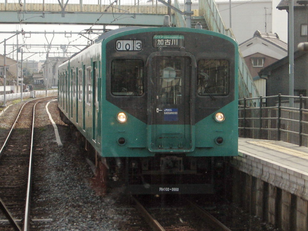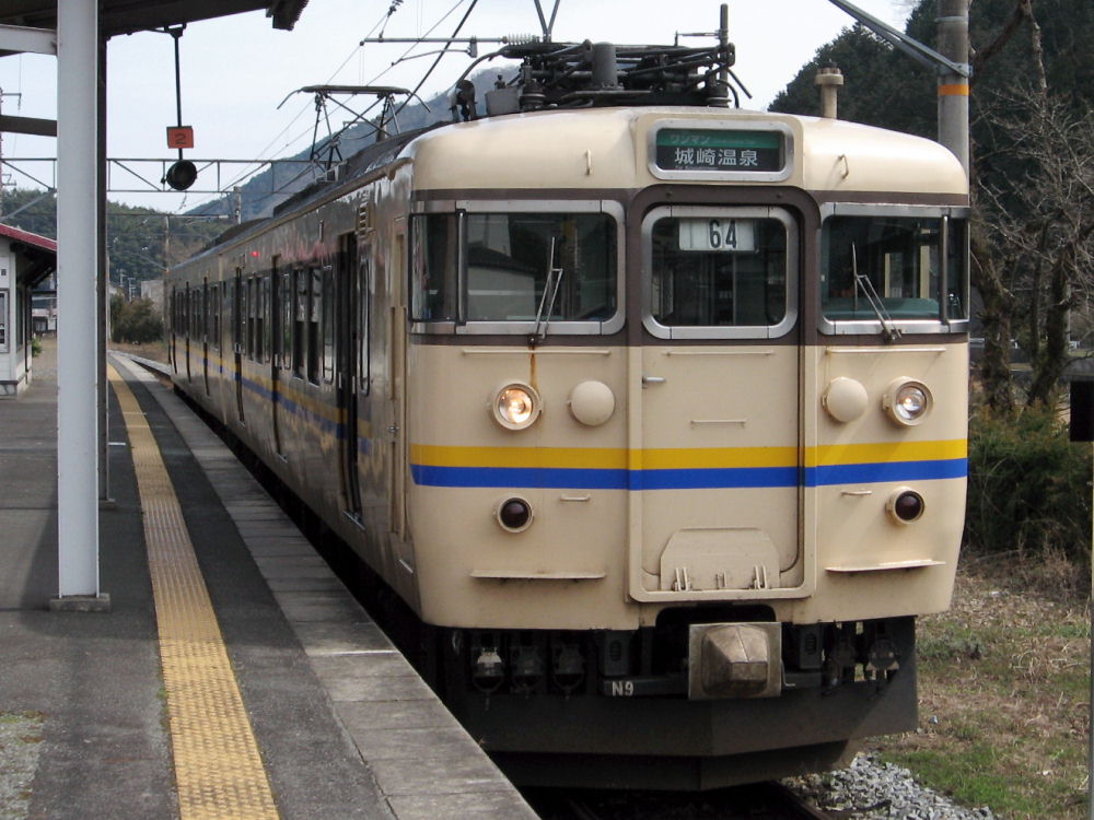 篠山以北の普通電車は この2両編成の113系です。 広島周辺に移った115系の福知山色とは違ってます。 4両編成を2両編成にしたため反対側は中間車が先頭車に改造されてます。 前面の黄色い部分は塗装ではなくて、パネルが取り付けられてます。 プロテクターって感じでした^^ この車両は、福知山線だけでなく山陰線の城崎温泉まで使われてます。 この2日後くらいに、トラックが養父付近で通信ケーブルを切断して 6時間くらい不通となってました。 もし、フリーキップでぶらり旅の途中で不通になったら・・・ 大損です^^ この日は阪和線が昼間不通となったようで、帰りの時間に影響が残ってました... |