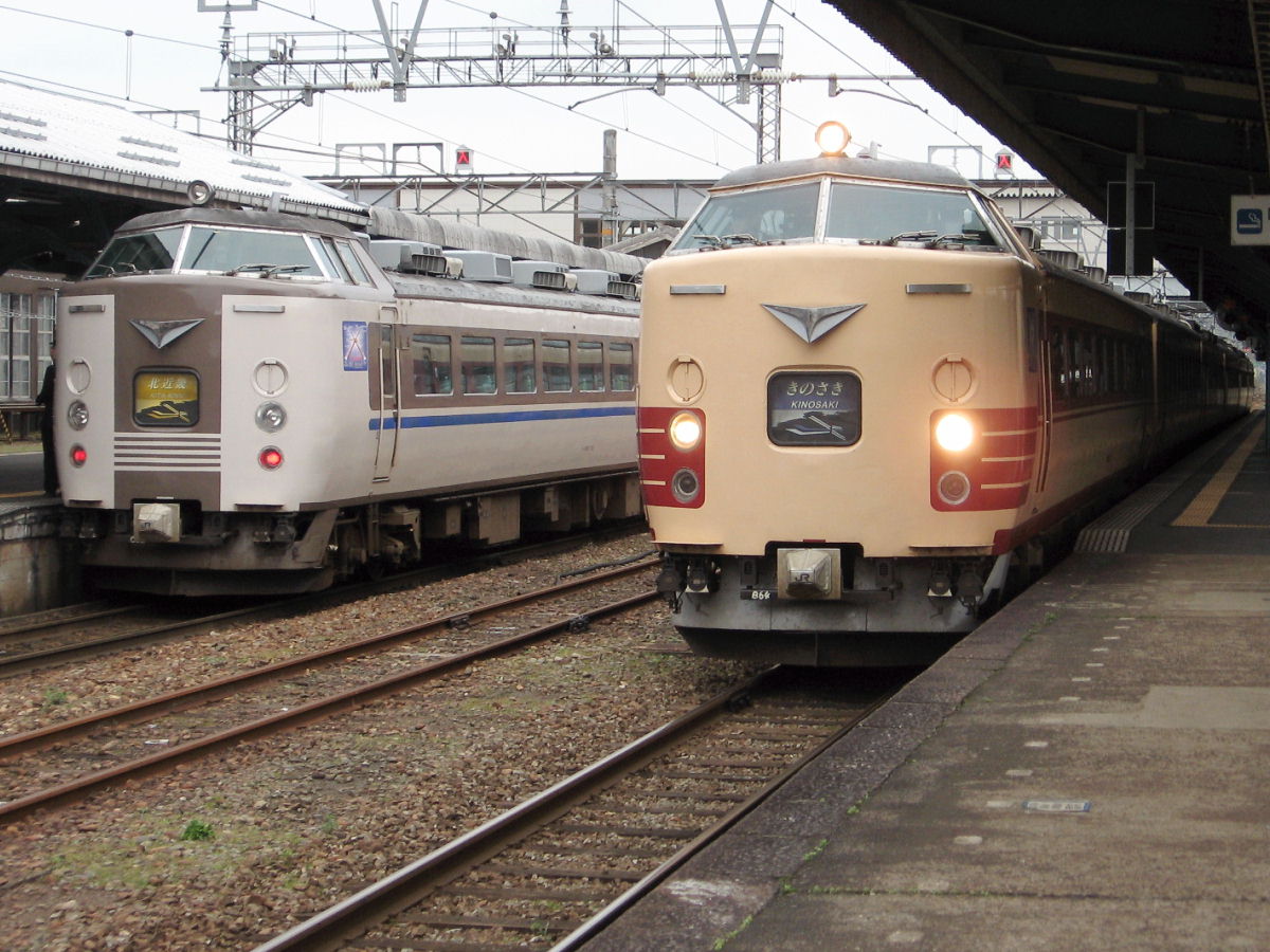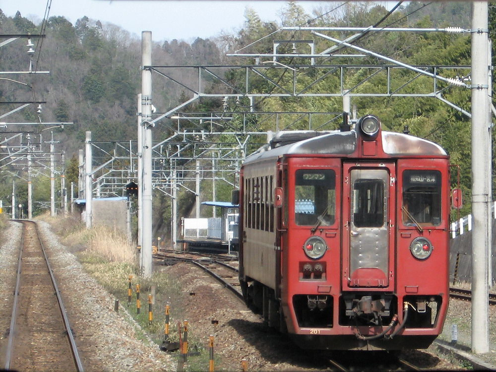 北近畿タンゴ鉄道のホームは元の場所に取り残されてしまって JRからの乗り換えには少し距離があります。 福知山を出てからしばらくは山陰線と北近畿タンゴ鉄道の線路は平行に走ってます。 113系の中から同じ方向に走ってる北近畿タンゴ鉄道の車両を撮りました。 北近畿タンゴ鉄道は かなりの部分が電化されてますが、電車は持ってないようです。 JRの183系特急電車乗り入れのため、JR負担で電化したのかも^^ こちらは豊岡駅です。 福知山とは違って、JR構内の端っこにホームがあります。 乗ってませんが、転換クロスシートみたいでした。今度乗ってみたいです。 JRの青春18きっぷの期間限定で「北近畿タンゴ鉄道版青春18きっぷ」なるものが あるようです。 しかし、元々はJRの路線だから3セクにならなければタダで乗れたのですが...w