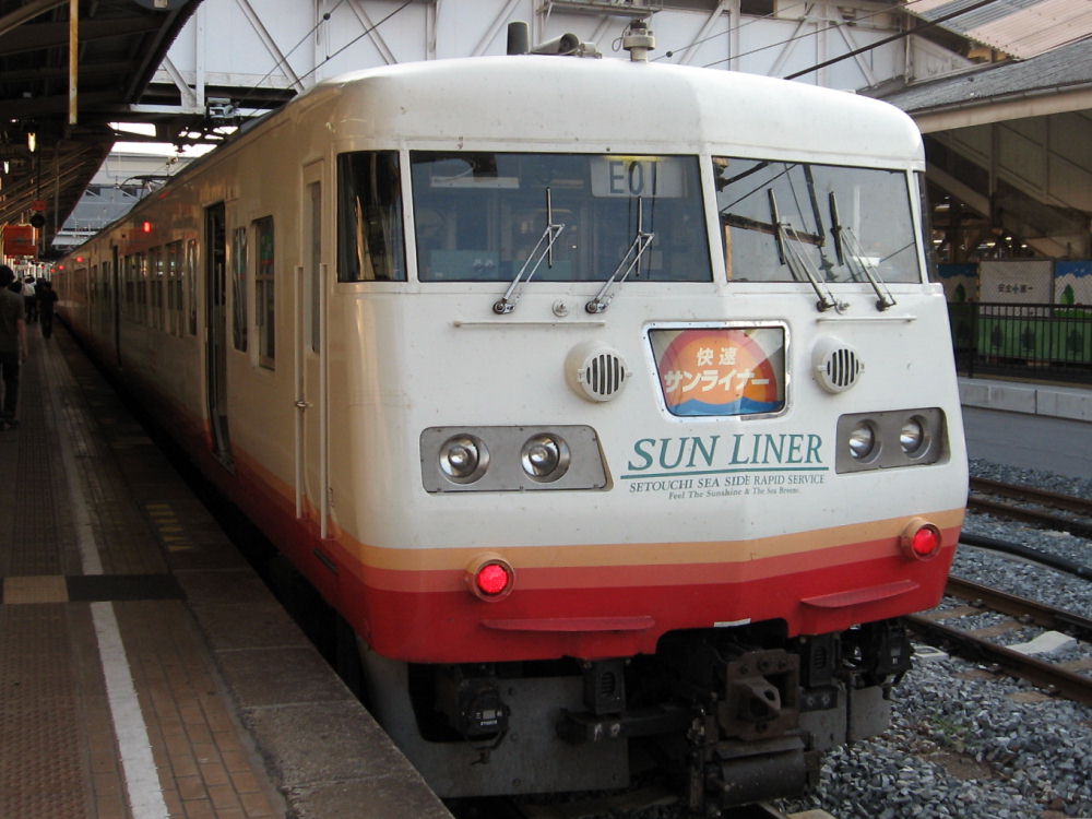 通勤時間帯は普通電車で運行してました。「サンライナー」ではありません^^
