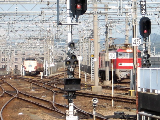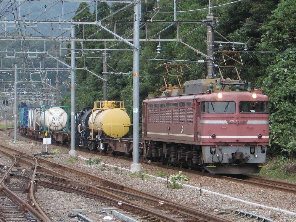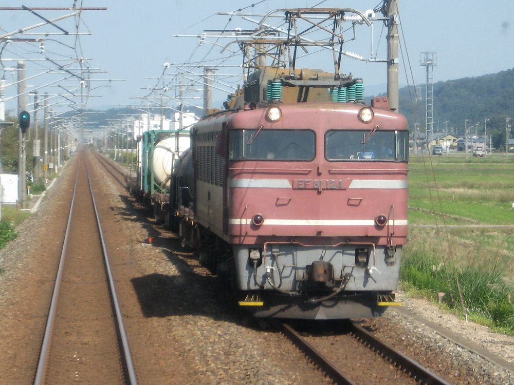 北陸といえば やはりEF81ですな。 「日本海」や「トワイライト・エクスプレス」の牽引も行ってます。 これは九州でもやりましたが、電車の中から撮りました^^ 九州で撮ったEF81は番号プレートが白枠で文字も白色でしたし、 ボディの表面処理も違います。 あれはスレンレスボディをピンクに塗装したものでした。 こちらはEF510かと・・・ 電柱の間で撮れるかなと思ったけど狭かった^^ EF81は、かなり古くなってきましたので、今後このEF510に 置き換わっていくのでしょう・・・ 今日、「JR西・広島地区のアルバム」つくりました^^