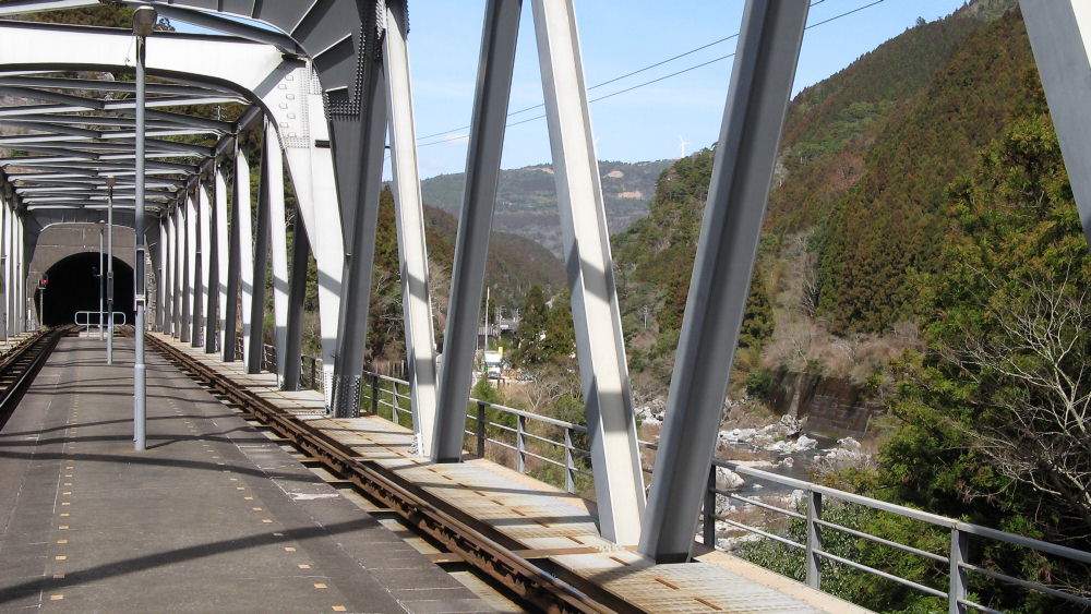 鉄橋の上に駅がありました。・・・たしか土佐北川駅。