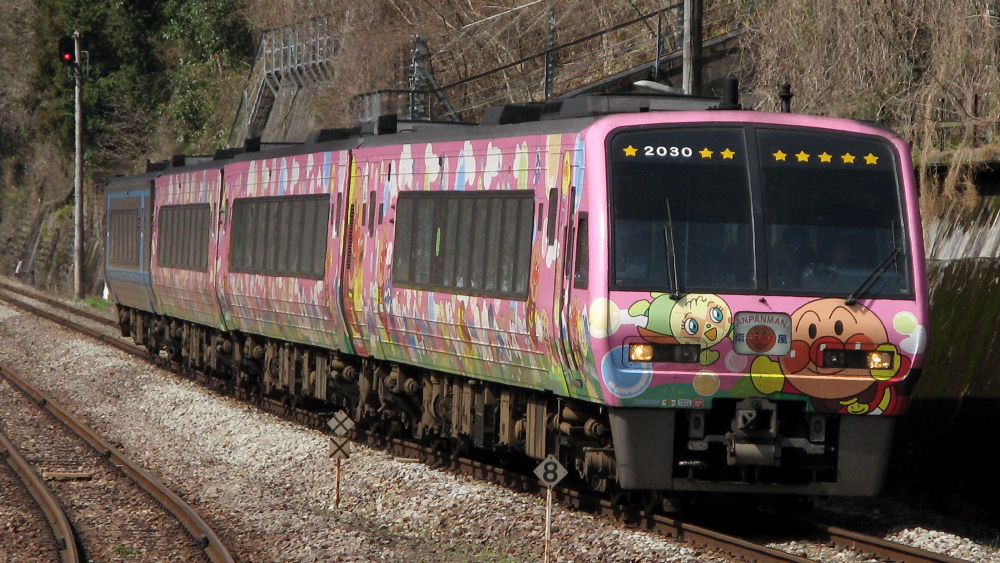 アンパンマンカーを連結している編成は、ヘッドマークにアンパンマンの